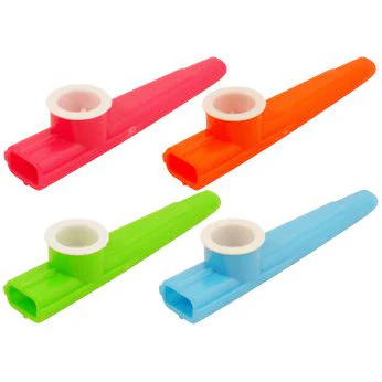 Ah the wonderful items that are kazoos! These musical instruments are a small version of a recorder with no holes and makes a funny noise- not that similar to a recorder I guess. Apart from you may learn to play them from a young age as they are often found as novelty gifts in party bags! They are most commonly associated with comedy similar to a Slide Whistle or one of those Giggle Sticks (otherwise known as Groan Tubes) that you tilt and it makes a funny noise.